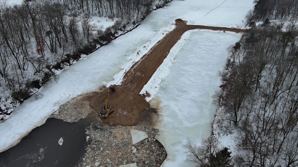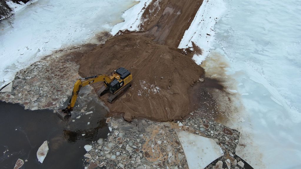 Working to creating the "sand trap" for the upcoming year's sand flow