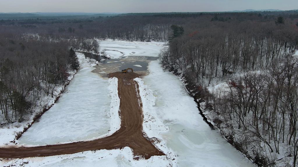 Sand spoil site north of river and dredge site.